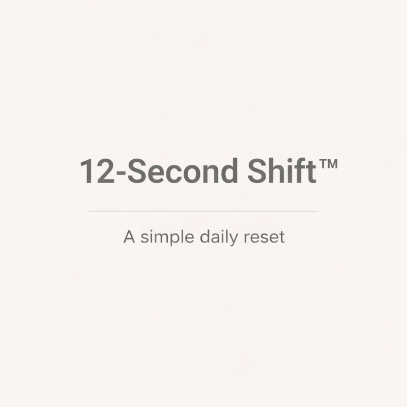 The 12 Second Shift is a short, science-informed daily reset practice designed to help you pause, breathe out, and regain a sense of calm and control in real moments of pressure.
